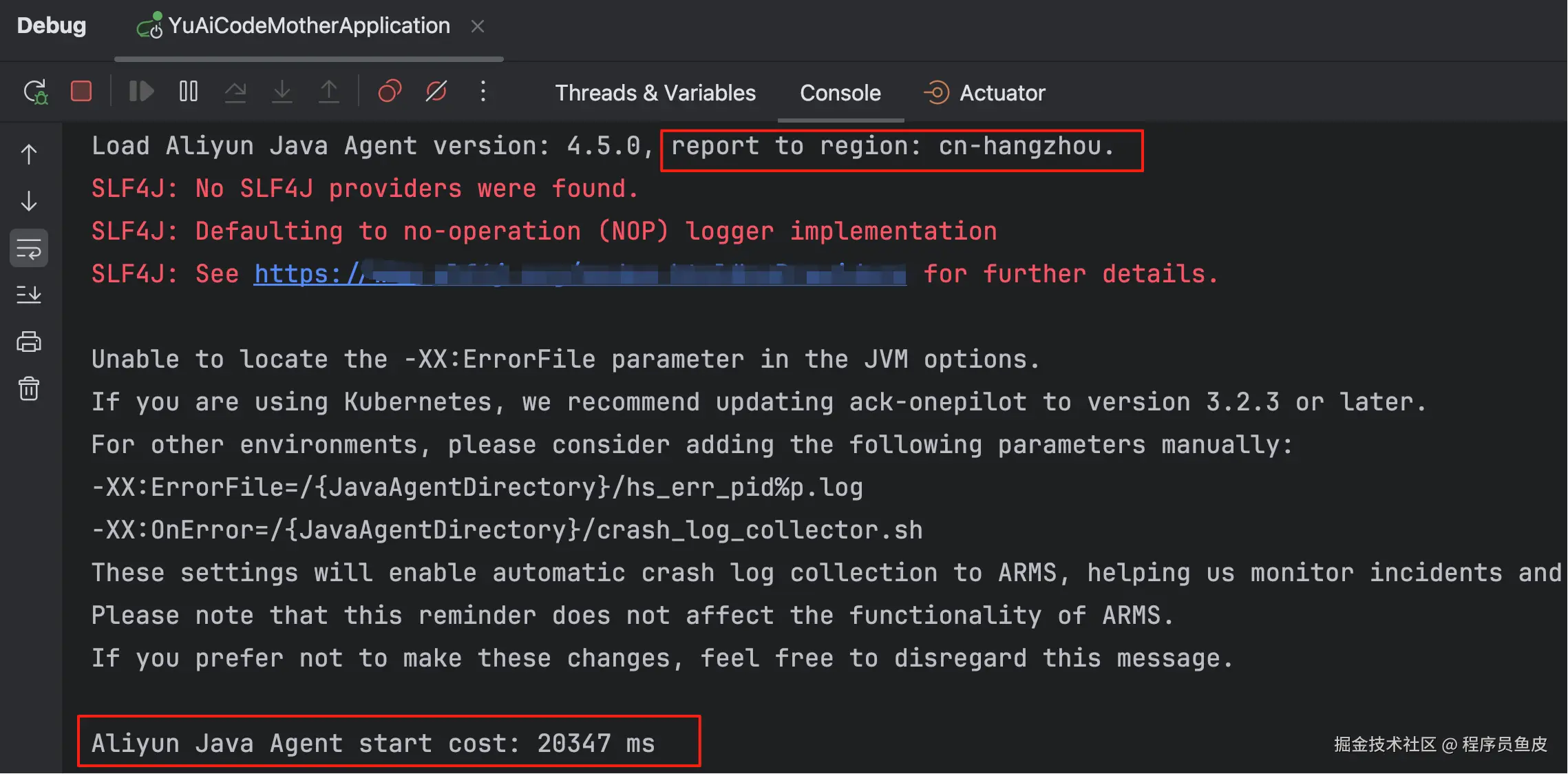 接下来启动项目。启动会比平时慢一些,这是正常的,因为引入 Agent 会拖慢启动速度。
