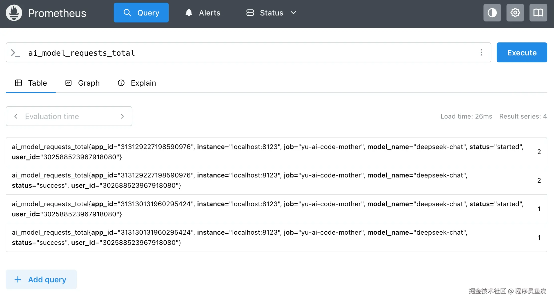 aiModelMetricsCollector.recordRequest(userId, appId, modelName, "success");
