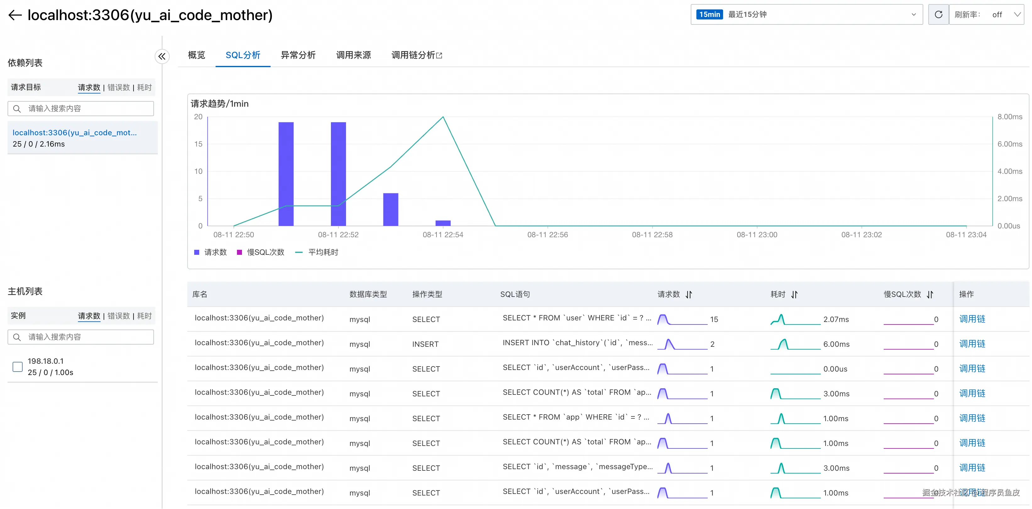 ARMS 还提供了 SQL 调用分析功能,能够监控数据库操作的性能: