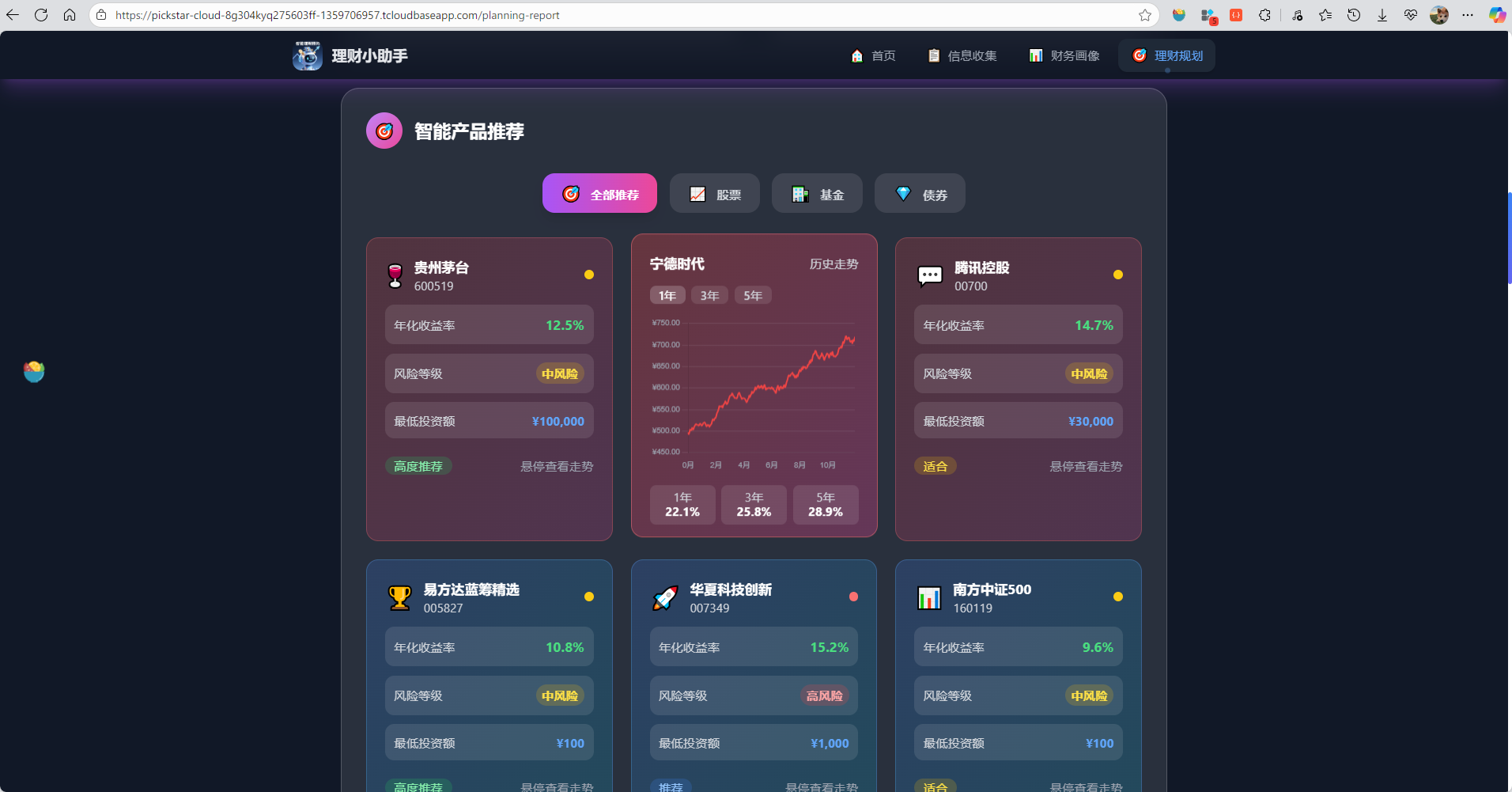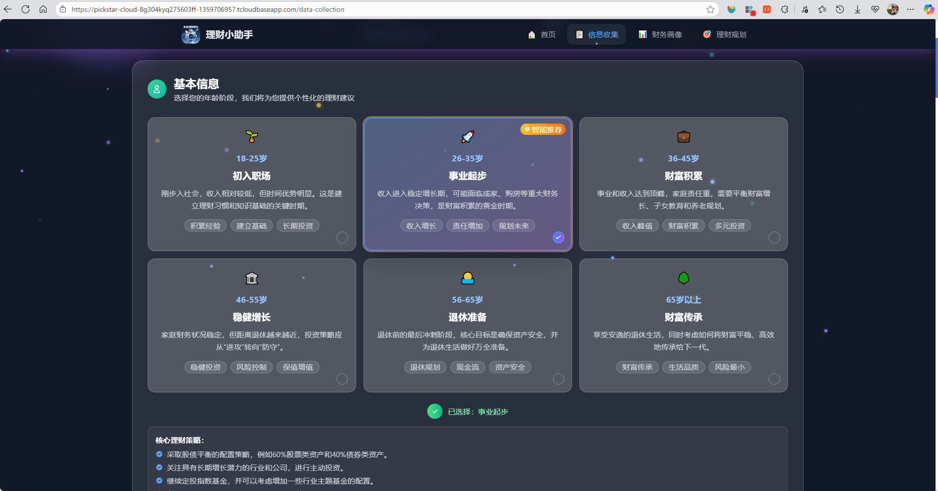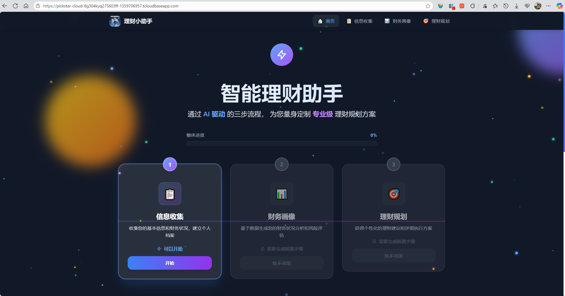 这个理财助手项目涵盖了用户信息收集、财务画像生成、个性化理财规划三大核心模块。每个模块都体现了现代Web应用的最佳实践:响应式设计、可视化图表、智能算法、用户体验优化等。通过这个案例,我想证明的是,在合适的工具支撑下,复杂的金融产品开发也能变得简单而高效。