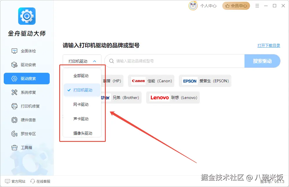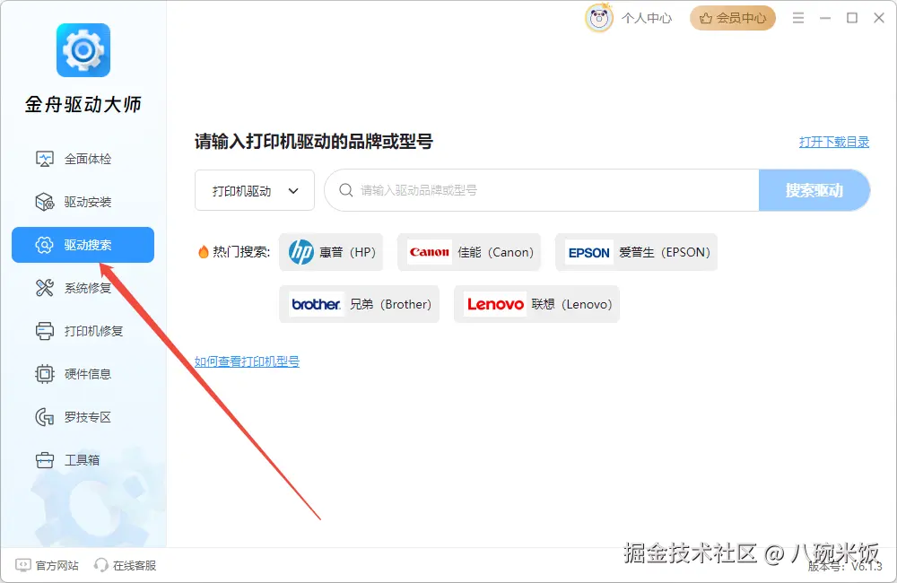 Step2、确定品牌型号后,选择“驱动搜索”