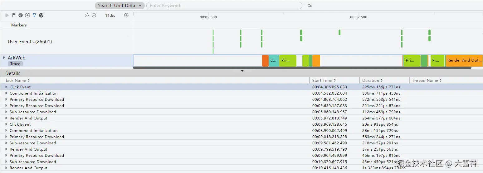 详情区可以跳转关键trace所在泳道,进一步分析加载问题。
