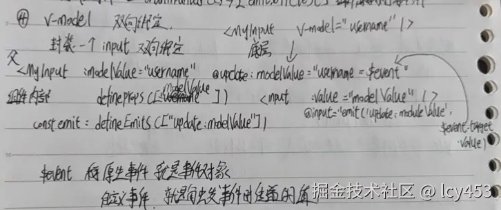 v-model双向绑定,无非就是把数据绑定到input的value上,然后@input事件发生的时候把value绑定到数据上,和react受控组件一个道理。