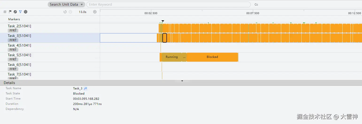 点击Task Name的跳转按钮可跳转到对应线程的泳道,可查看在该Task执行时间范围内,trace文件的打点信息,反映的是线程该时段内的函数执行情况。