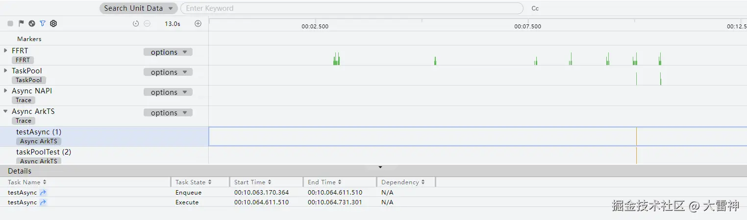 编辑展开Async ArkTS泳道,可单独查看ArkTS异步调用任务详情