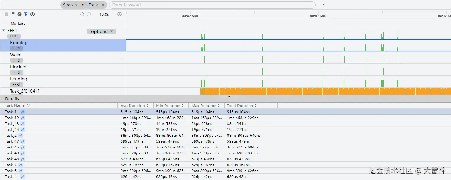 DevEco Profiler提供的Concurrency场景分析能力,帮助开发者针对并行并发场景,录制并行并发关键数据,分析Task的生命周期、吞吐量、耗时等性能问题。Concurrency模板支持展示ArkTS异步接口、NAPI异步接口、TaskPool、FFRT并发模型相关信息,并集成ArkTS Callstack、Callstack、Process信息,支持用户从Task生命周期关联到具体调用栈信息,方便用户定位并行并发性能问题。