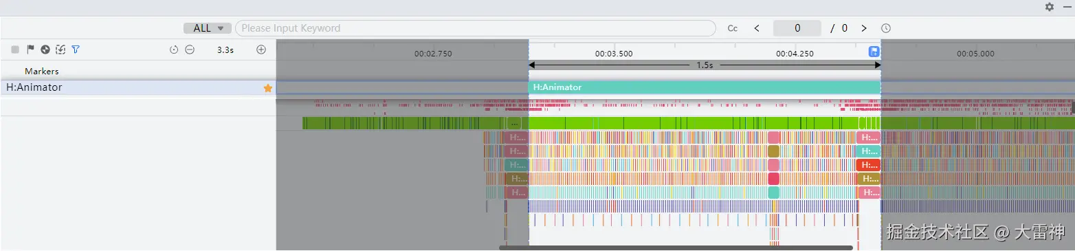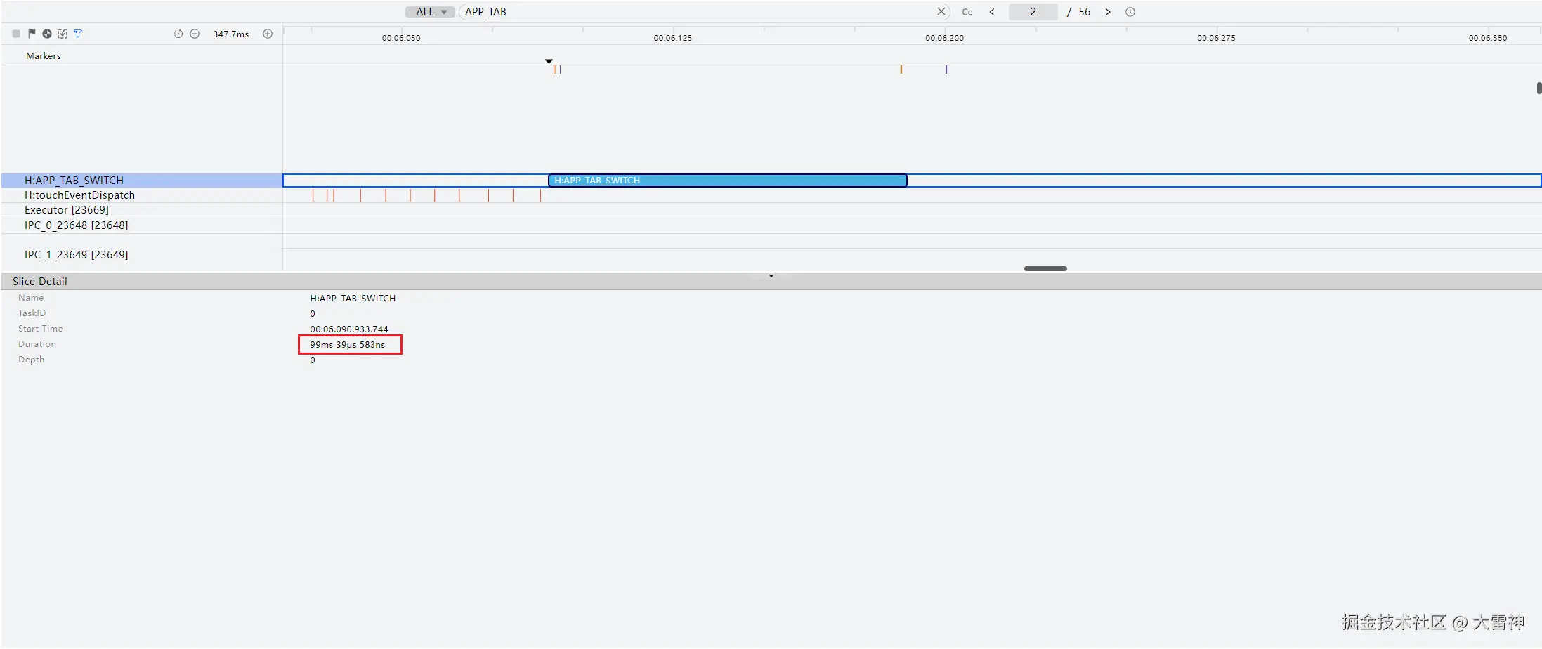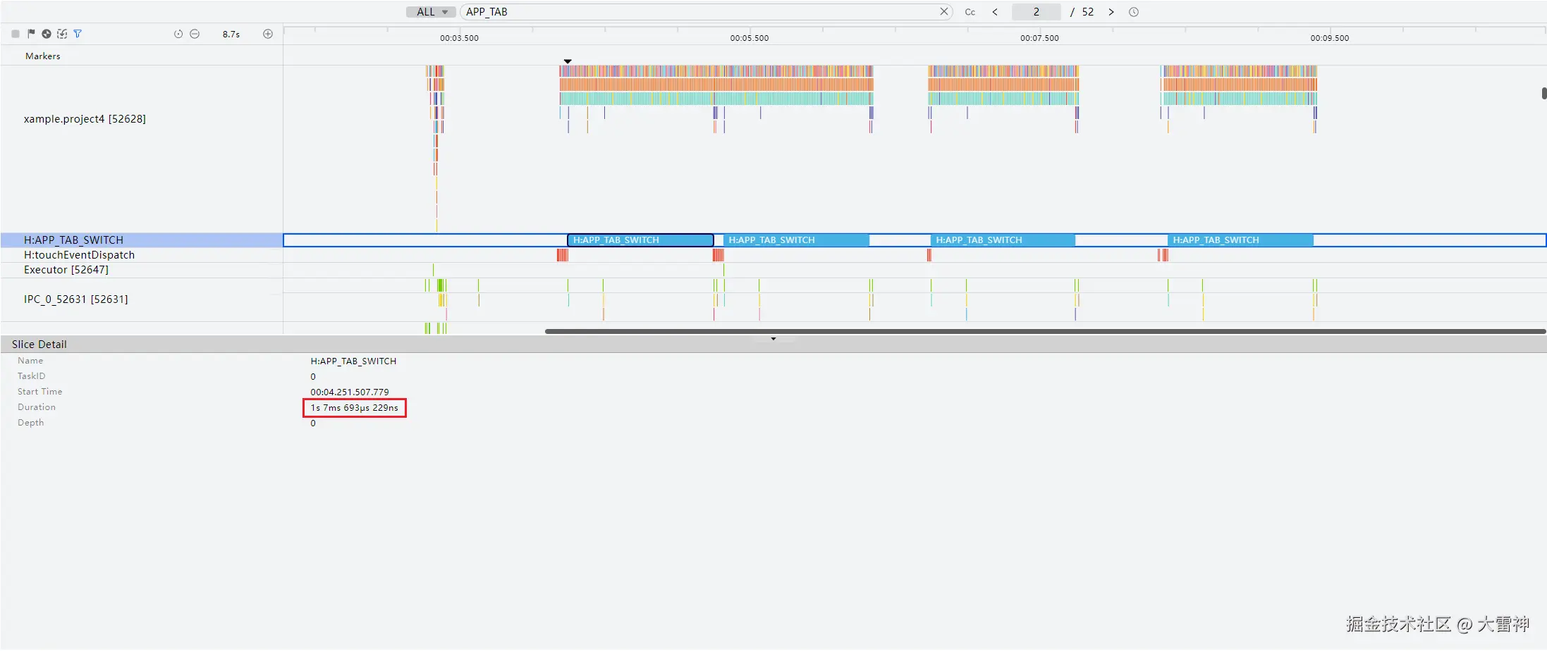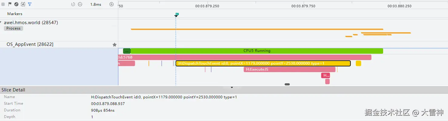 下图展示了超长帧案例中Callstack的主线程子泳道。