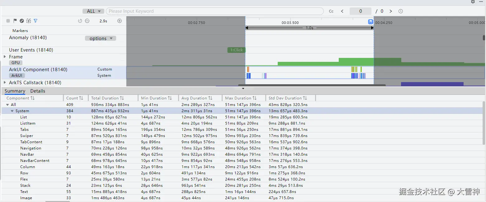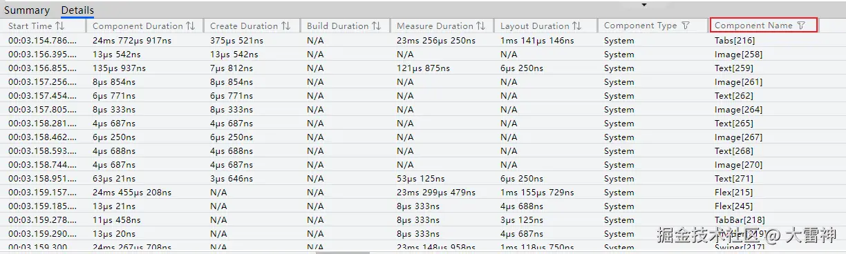 ArkUI Component泳道记录了自定义组件以及系统组件的绘制次数、耗时等信息,重点关注相对于其他组件耗时比较久的组件。