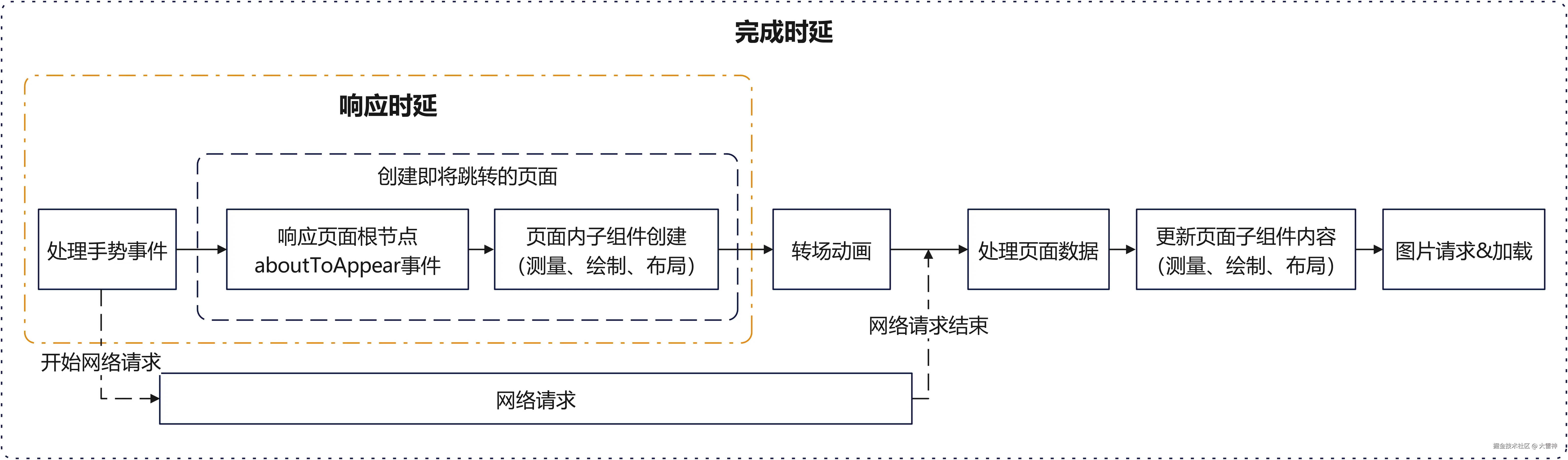 在附带网络请求的页面跳转场景中,完成时延较长的绝大多数原因在于网络数据的HTTP请求时间较长。由于网络请求从操作系统侧发起和控制,并且网络环境存在不可控性,因此很难在业务逻辑代码中优化请求速度。因此,提前发起请求就显得尤为重要。通常可以从以下两个方面进行优化: