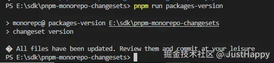 执行 pnpm run packages-version
