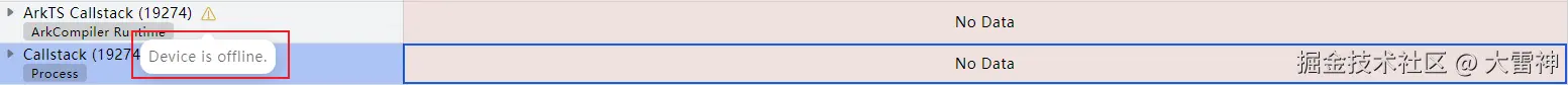 当前的ArkTS Callstack/Callstack/Native Allocation/ArkTS Allocation泳道录制如果无值,泳道显示No Data,在泳道名称处可将光标悬浮于三角告警图标处,查看泳道报错的原因。