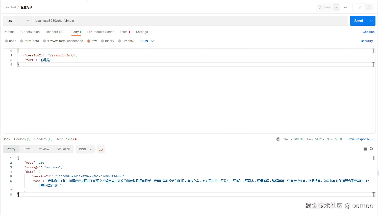 public CommonResponse<ChatResponse> simpleChat(@RequestBody ChatRequest chatRequest) {