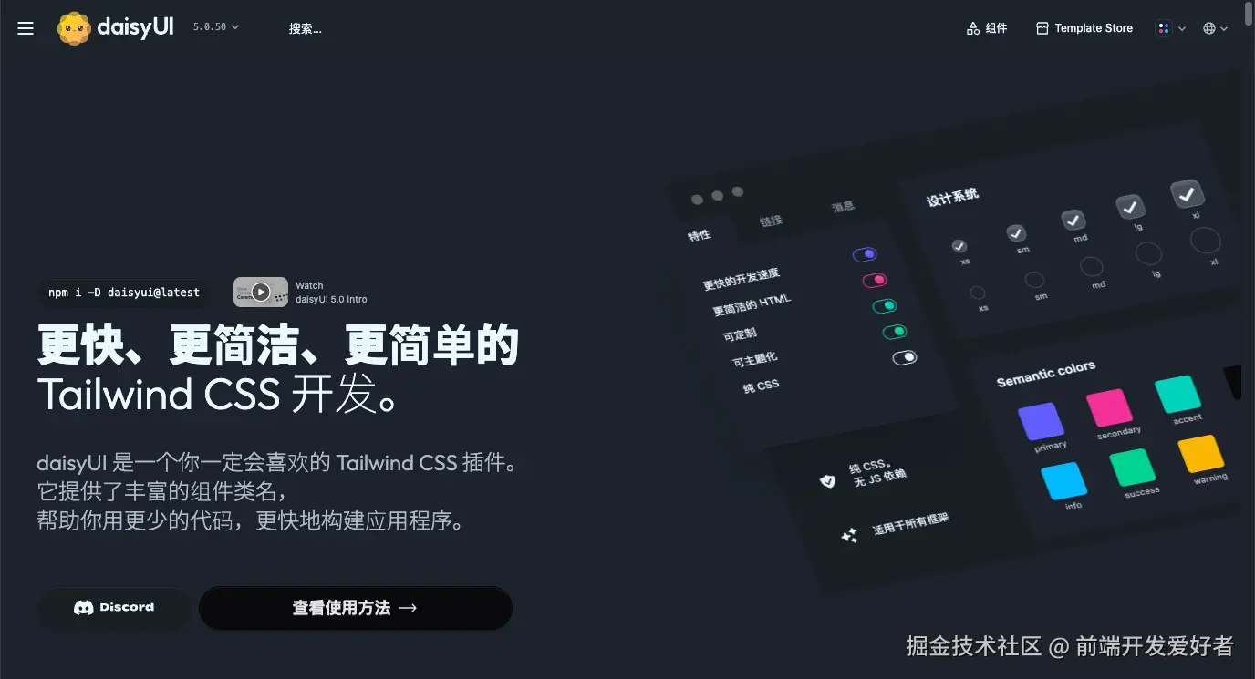https://github.com/saadeghi/daisyui - 官网:
