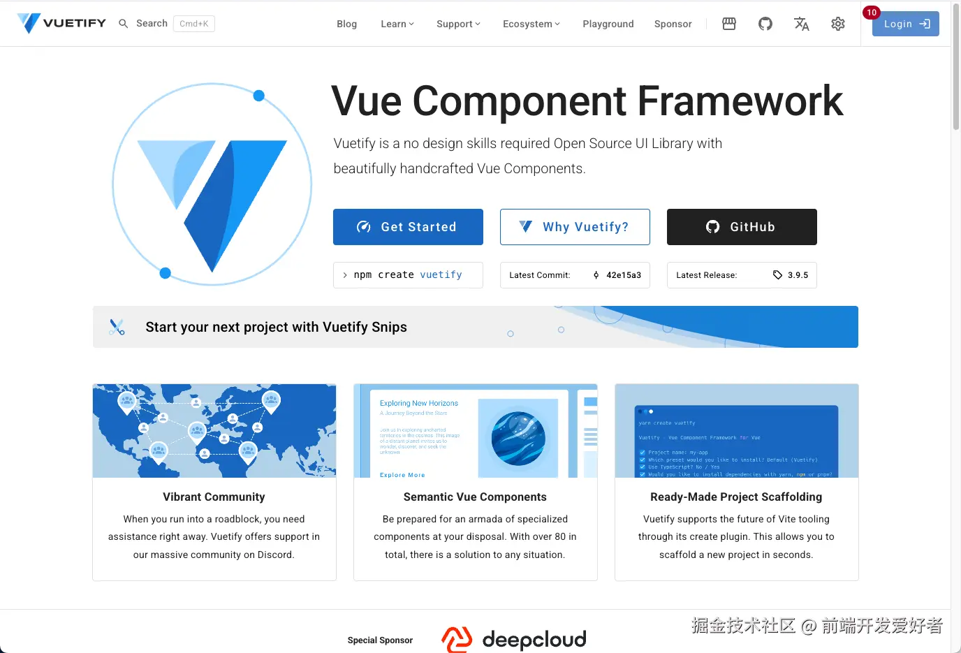 https://github.com/vuetifyjs/vuetify - 官网: