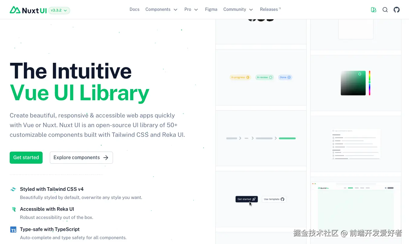 Nuxt 3/4官方旗舰,Reka UI+Tailwind CSS,SSR 满分,全量无障碍、RTL & 暗黑模式、Figma 设计稿 - 使用场景:需要