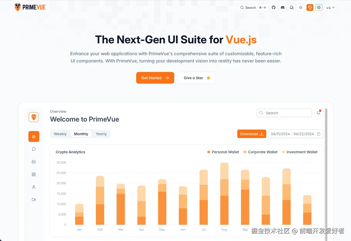 PrimeVue功能但想完全自定义样式 - GitHub Stars:-(跟随 PrimeVue 版本)