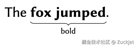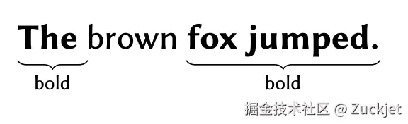 似乎很清楚,“The” 应该加粗,而 “jumped” 应该变为斜体。但是,对于 “fox” 这个两位用户都更改了格式的单词,应该应用什么格式呢?由于加粗和斜体可以共存在同一个单词上,我们认为逻辑上合理的做法是让 “fox” 同时加粗和斜体: