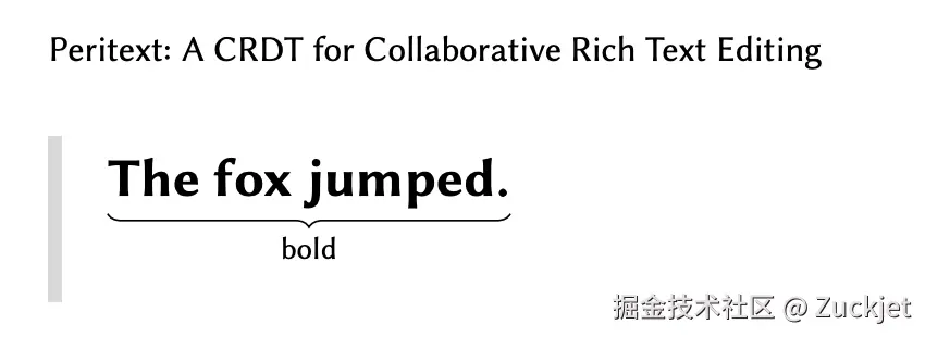 周末我仔细阅读了这篇论文,并顺手翻译过来了,原文参见:> Geoffrey Litt, Sarah Lim, Martin Kleppmann, and Peter van Hardenberg. 2022. Peritext: A CRDT for Collaborative Rich Text Editing. Proc. ACM Hum.-Comput. Interact. 6, CSCW2, Article 531 (November 2022), 35 pages. doi.org/10.1145/355…