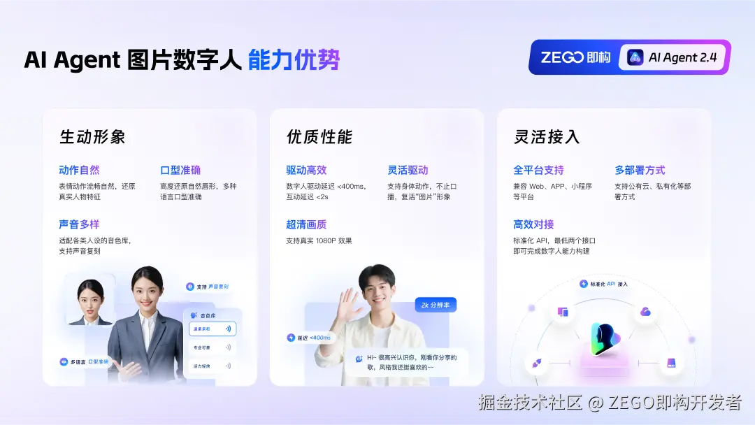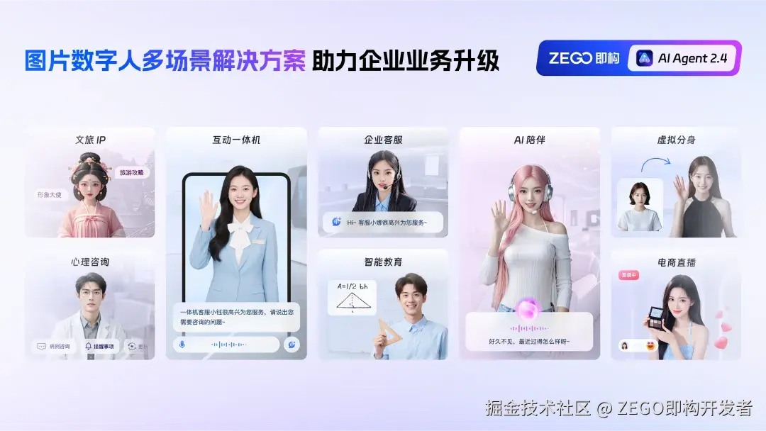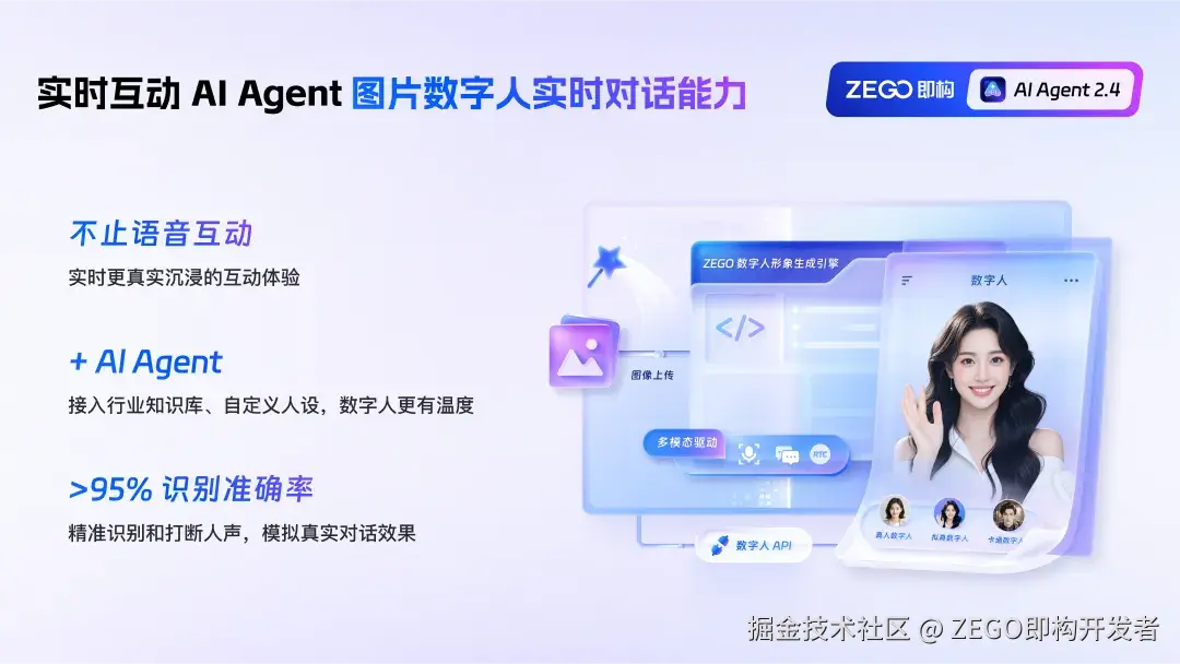 即构新推出的实时互动 AI Agent 2.4「图片数字人实时对话」,是一套面向企业和开发者的实时互动 AI 技术解决方案。