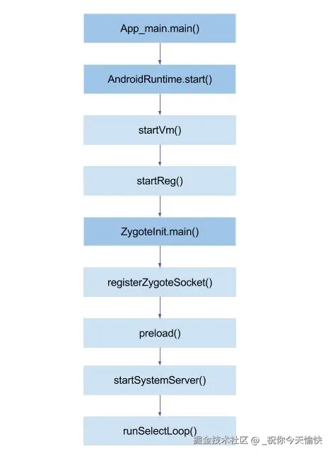 当 zygote-start 事件发生时,这些代码就会被执行,-Xzygote: 告诉 app_process 这个进程是 Zygote。--start-system-server: 告诉 Zygote 进程在自身启动完成后,立即启动 System Server 进程。