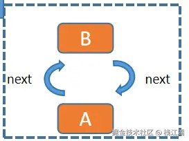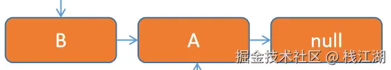 step4:此时就变成了 A 下一节点是 B,B 下一节点又是 A,就形成了链表环。
