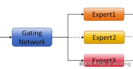 在某个 MoE 层中,模型会包含多个Expert(专家子网络),以及一个Gating Network(门控网络):