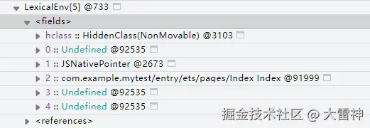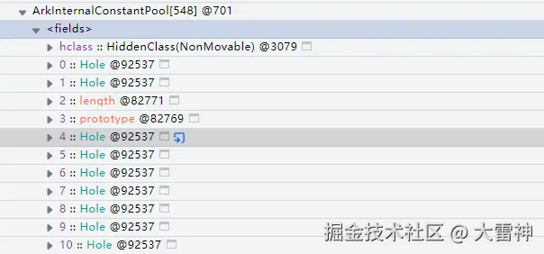 虚拟机创建的常量池,ArkTS代码层面不可见,涉及到的字符串常量会在(array)标签中展示: