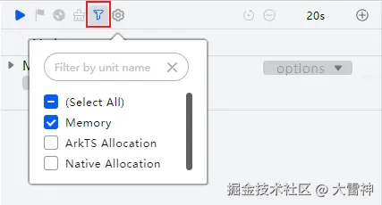 创建模板后,将模板中的其余泳道去除勾选,仅录制Memory泳道的数据。
