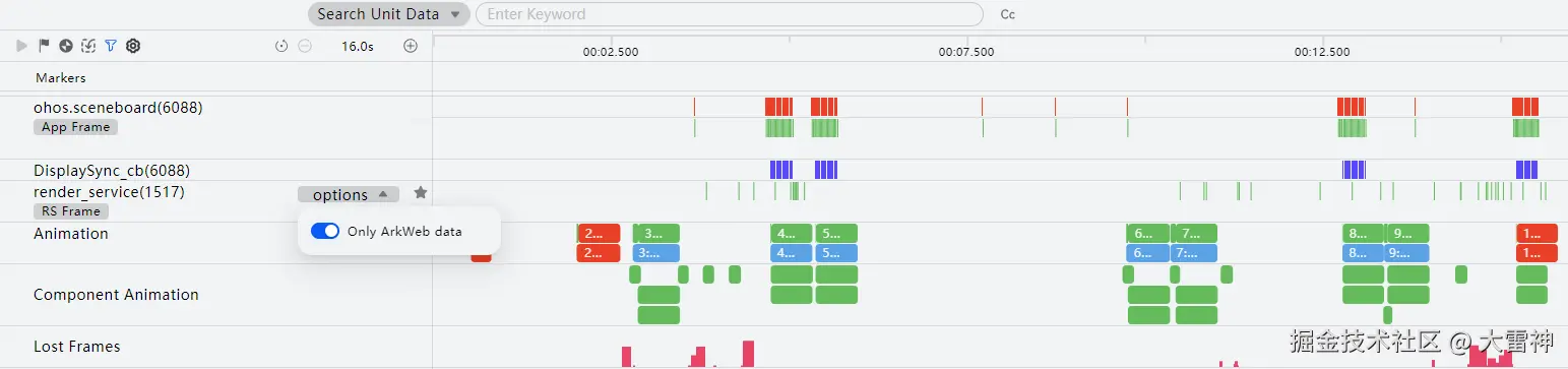 打开Only ArkWeb data开关,筛选过滤出包含ArkWeb帧的数据。