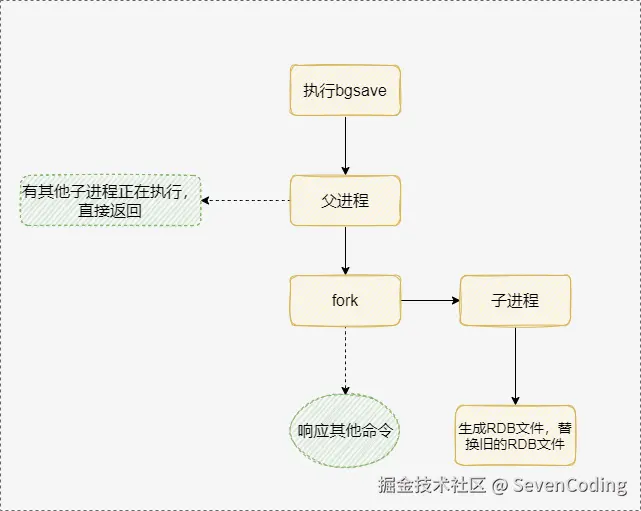 bgsave是主流的触发 RDB 持久化的方式,执行过程如下: