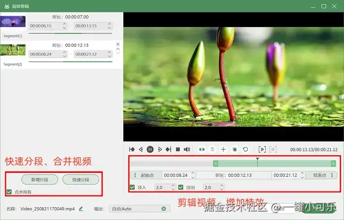 步骤3:录制结束后,建议先利用软件自带的 “高级剪辑” 功能进行处理,再保存文件。该功能操作简单,即使是新手也能轻松上手,可以实现视频分割、剪掉开头冗余片段等操作。