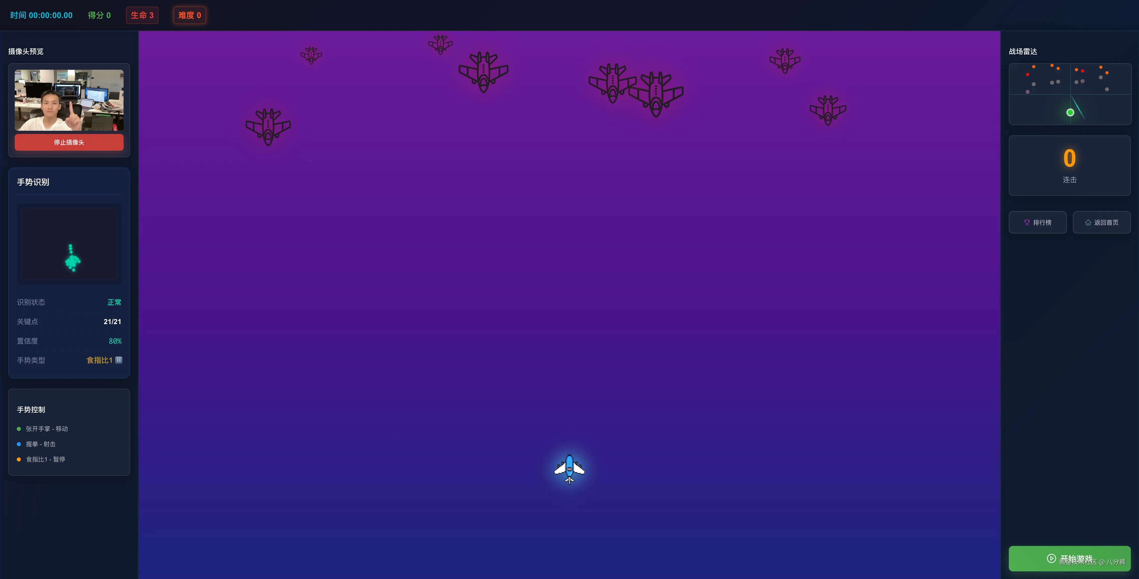 📷 交互方式: 基于摄像头的手势识别控制(移动与攻击)
