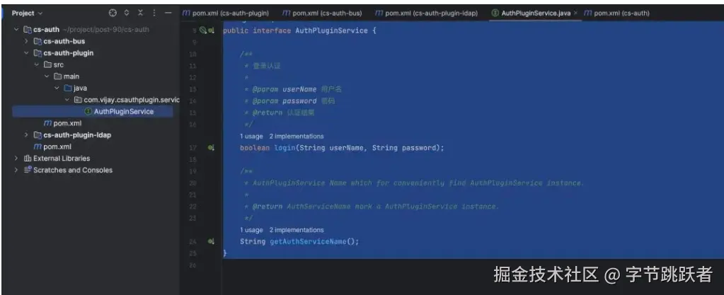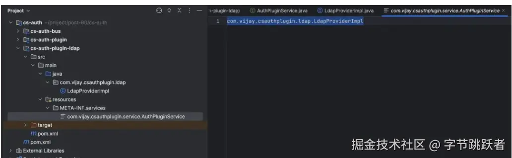 7.cs-auth-plugin-ldap 中实现SPI的接口并且打成jar包,模拟外部提供的插件jar包