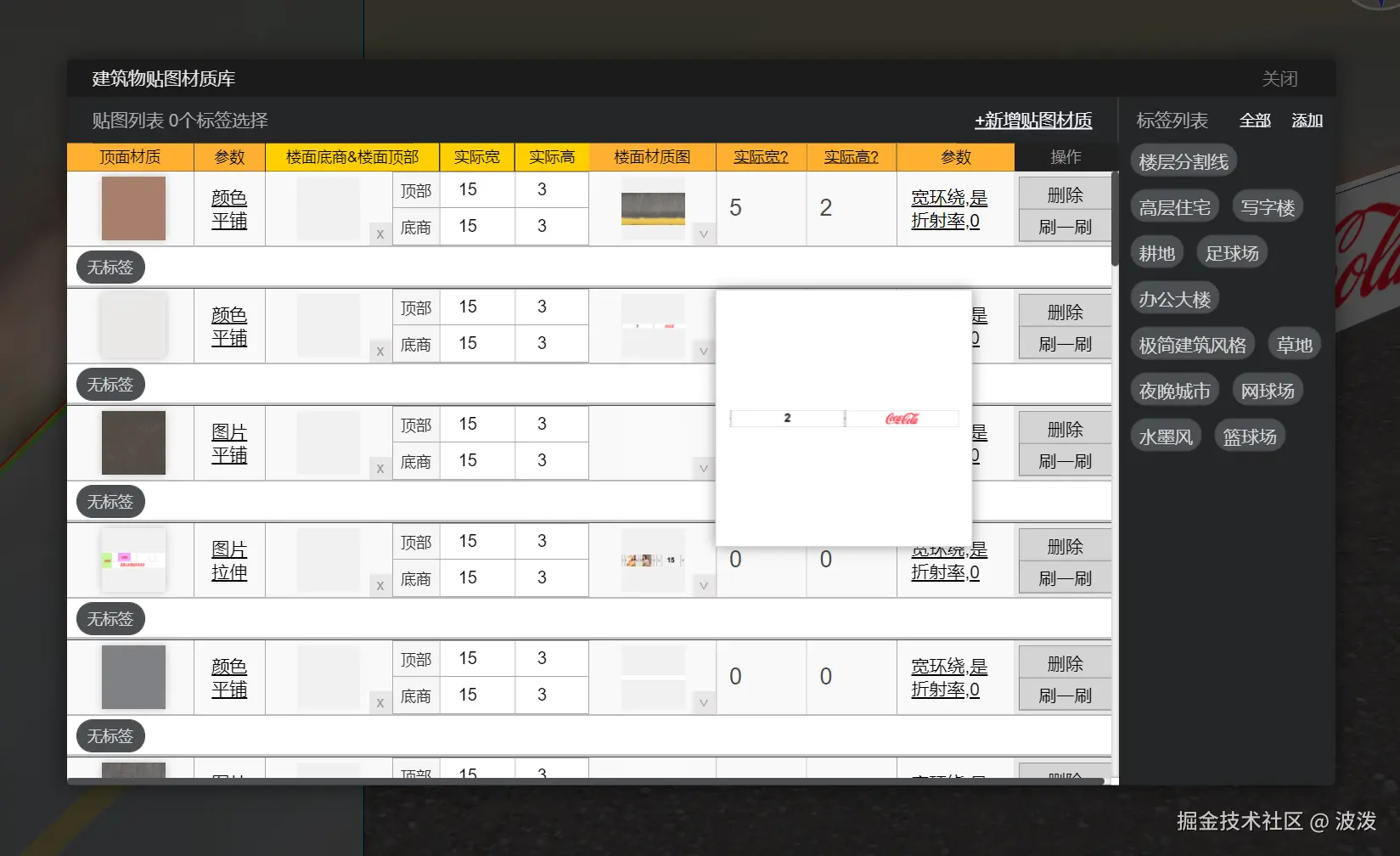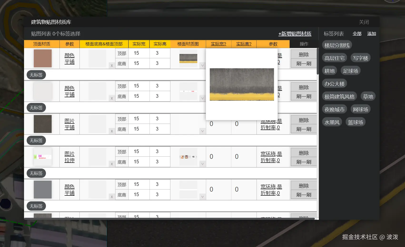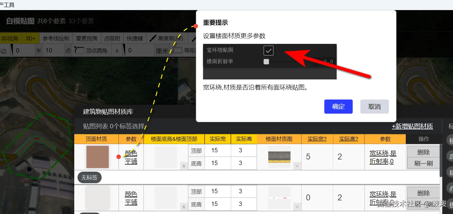3、贴图,道路面设置高度0.01米,围墙设置2米。使用材质刷刷上材质。