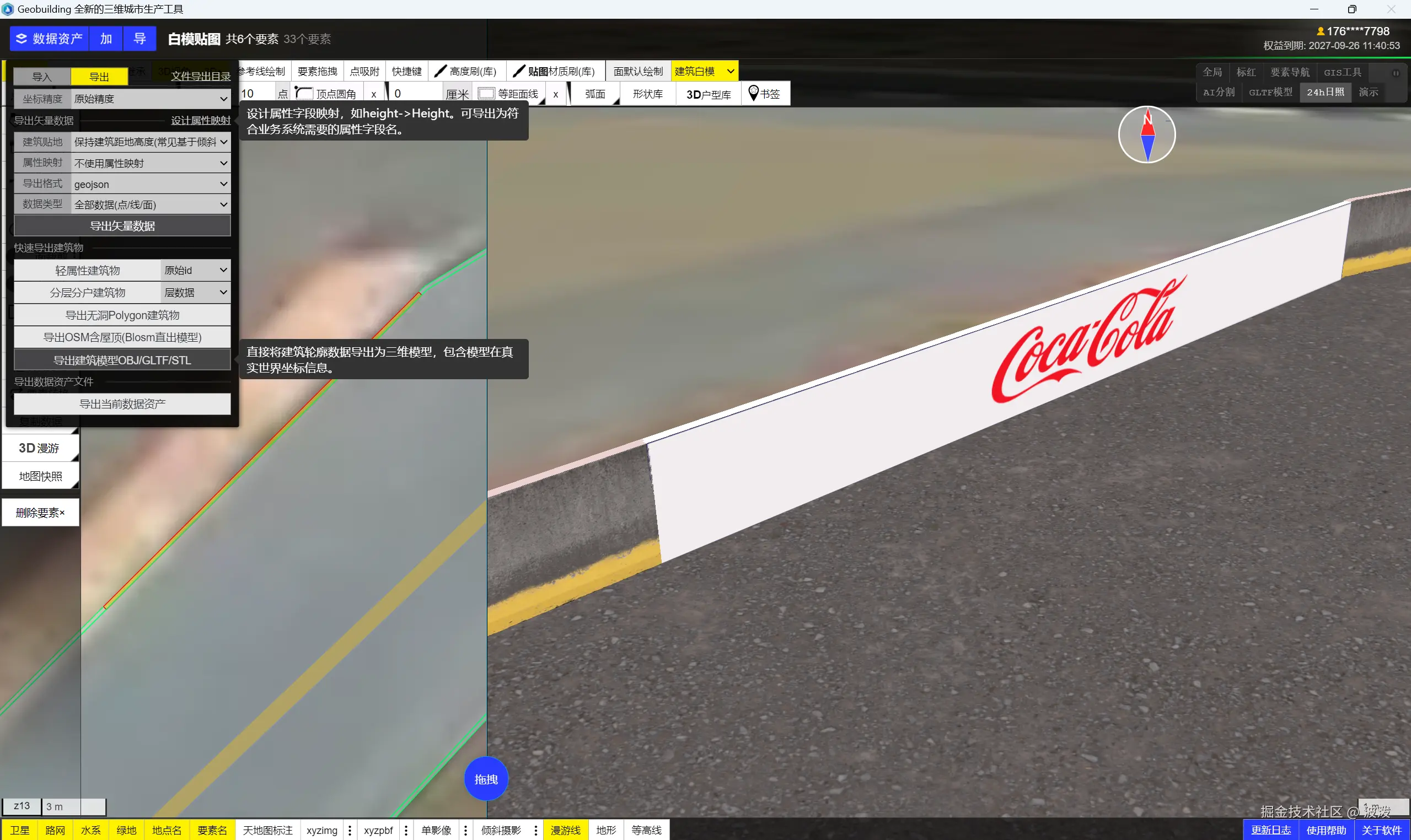 该方法适用于将geojson shp白模贴图,导出为gltf模型等格式。