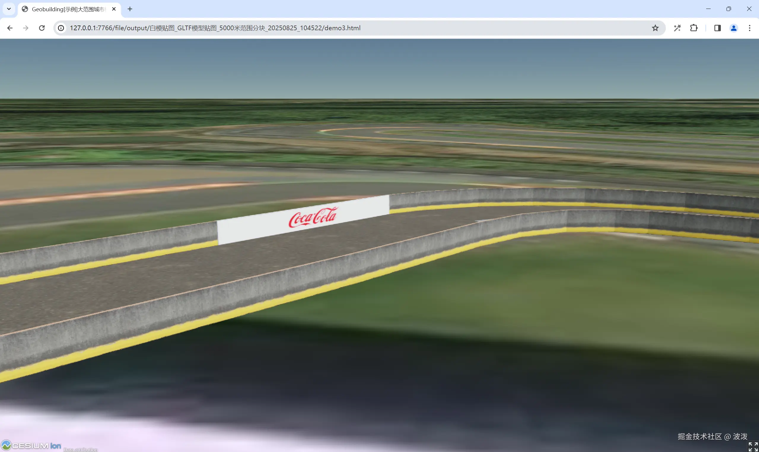 导出模型时,会一并导出基于cesium的演示文件。打开演示文件查看效果。效果符合预期,模型和gis也是对齐的。