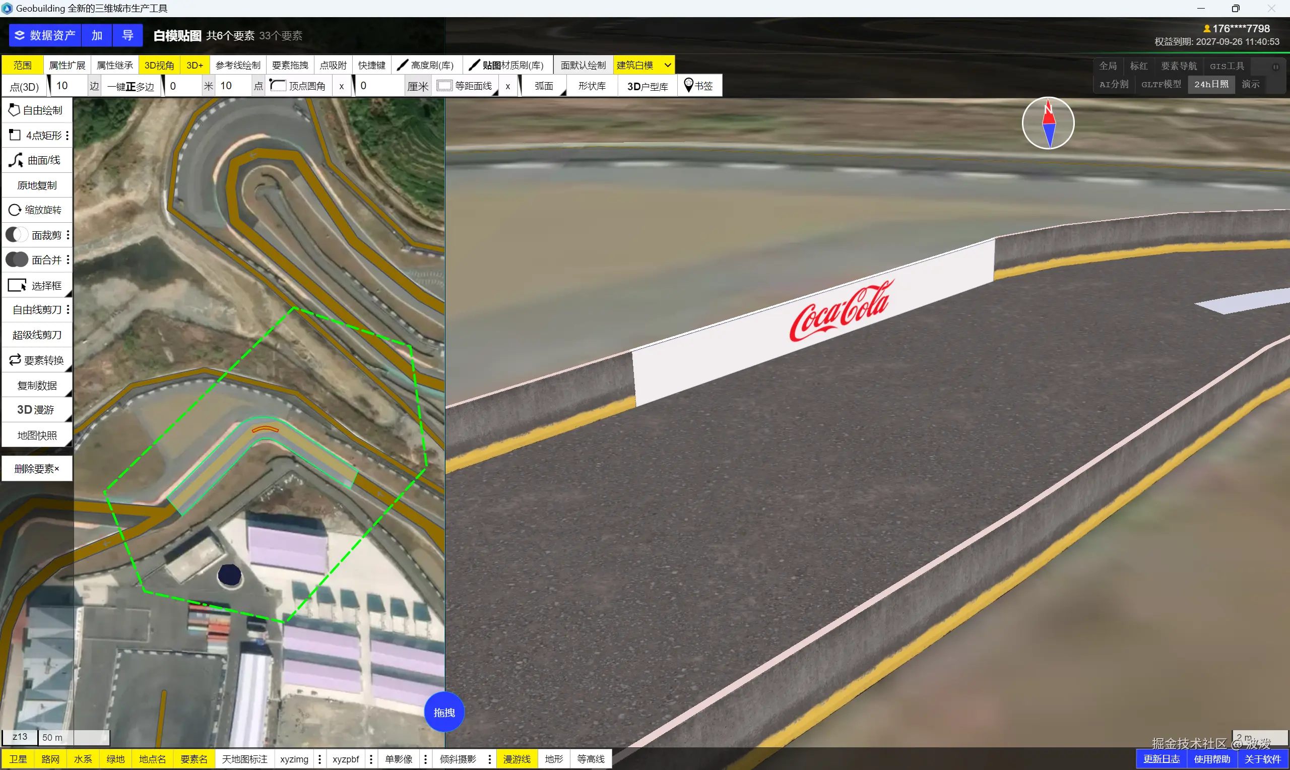 来自用户的真实场景,要做赛车场地模型。 模型包含道路和道路两侧,模型要有经纬度,和gis底座对齐,最终在uegis中模拟赛事。