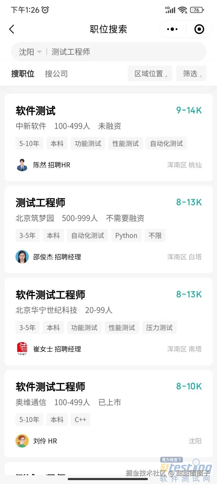 以下是在boss搜索的二线城市测试工程师薪资及岗位