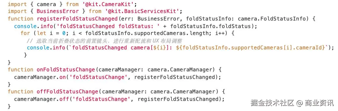 ·实现方式:应用需监听折叠状态的变化,自主完成镜头的启停、切换,重新配置会话(涉及修改分辨率),重新查询镜头能力范围,并调整UX布局。