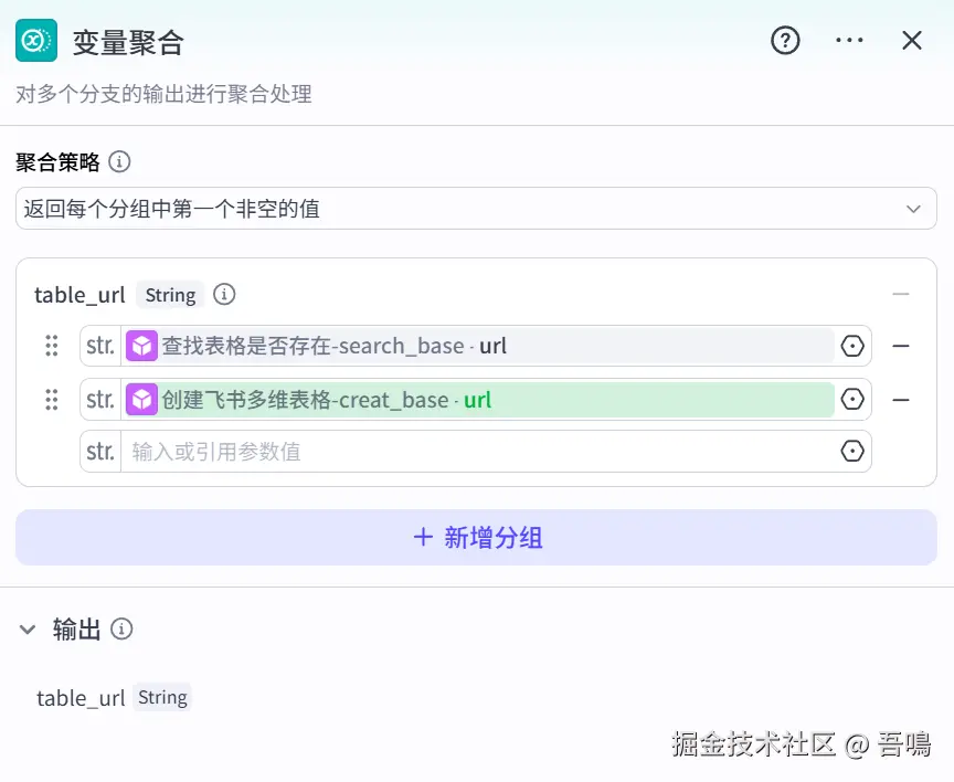 - app_token:引用“创建飞书多维表格”节点输出的“url”