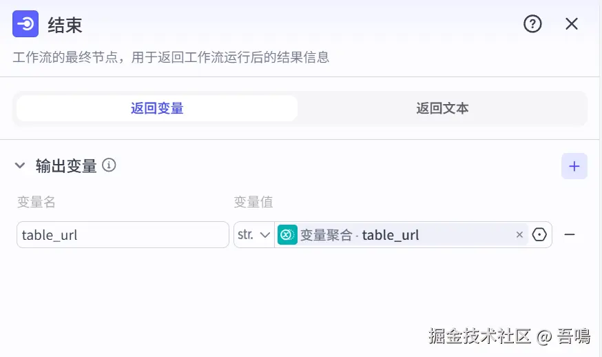 - name:数据表格名称,引用“开始”节点的“nickname”