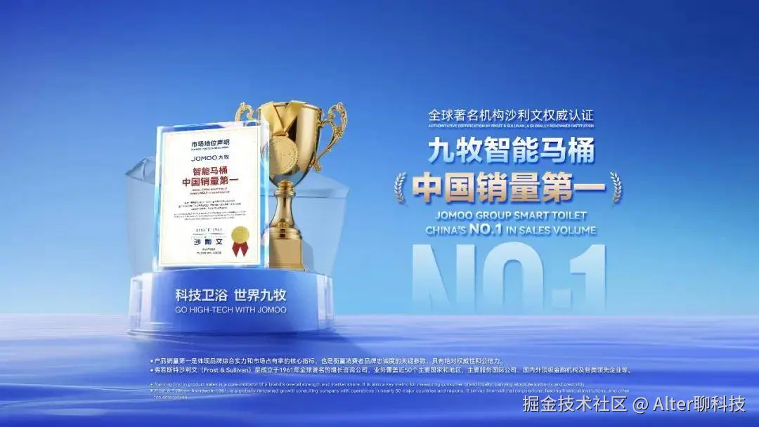 就像弗若斯特沙利文的认证,进行了实地调研、电话访谈、财报分析、行业咨询等形式的调研,交叉验证了自有数据库、行业协会数据以及新闻报道,最终才确认了九牧“智能马桶中国销量第一”的市场地位。