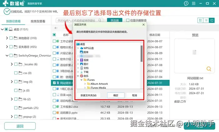 第3步: 最后别忘了在“浏览文件夹”中选择导出文件的存储位置。