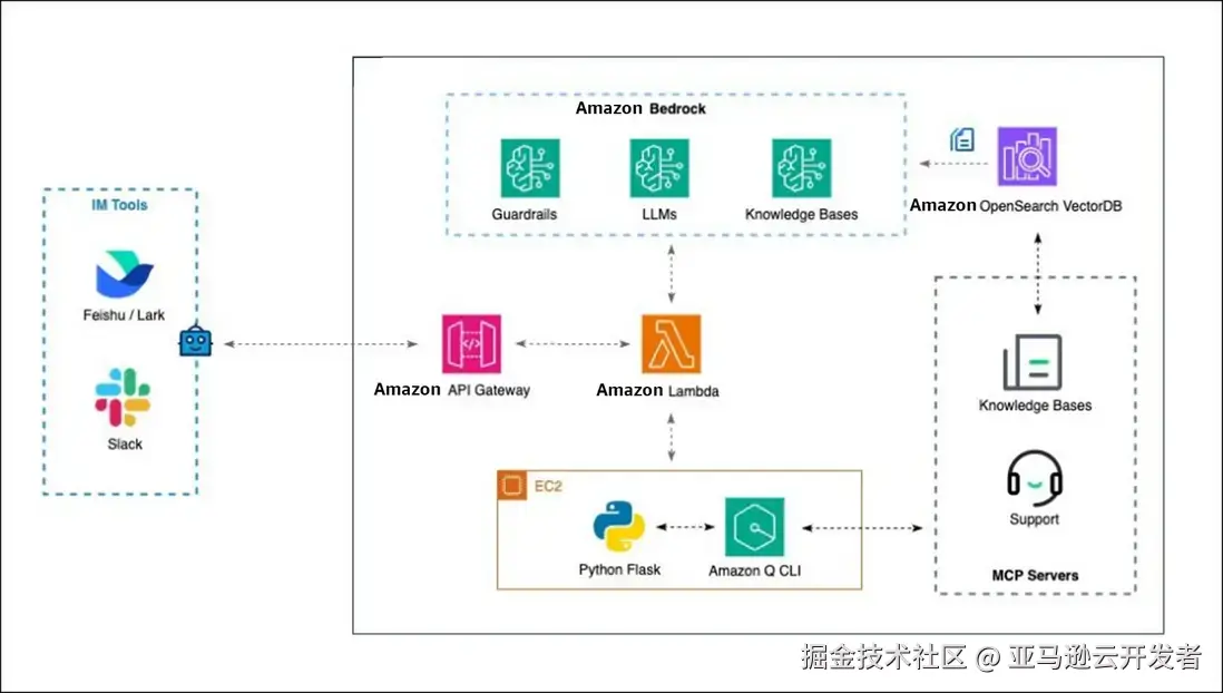 本文将指导您如何结合 Amazon Q Developer CLI 和 飞书(也可以是其它具备开放平台的 IM 工具,如 Slack),搭建对话式的 AI Agent 智能运维平台。