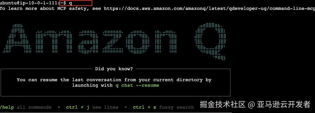 a. 安装 Q CLI (本文以 ubuntu 操作系统为例,要在其它操作系统安装 Q CLI 请参考:docs.aws.amazon.com/amazonq/lat… )