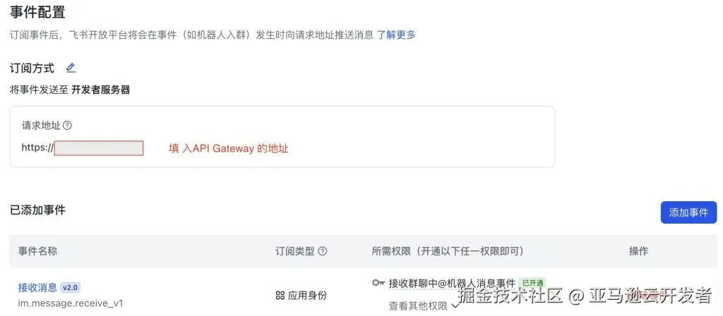 2. 配置飞书开放平台与 Amazon API Gateway 的集成