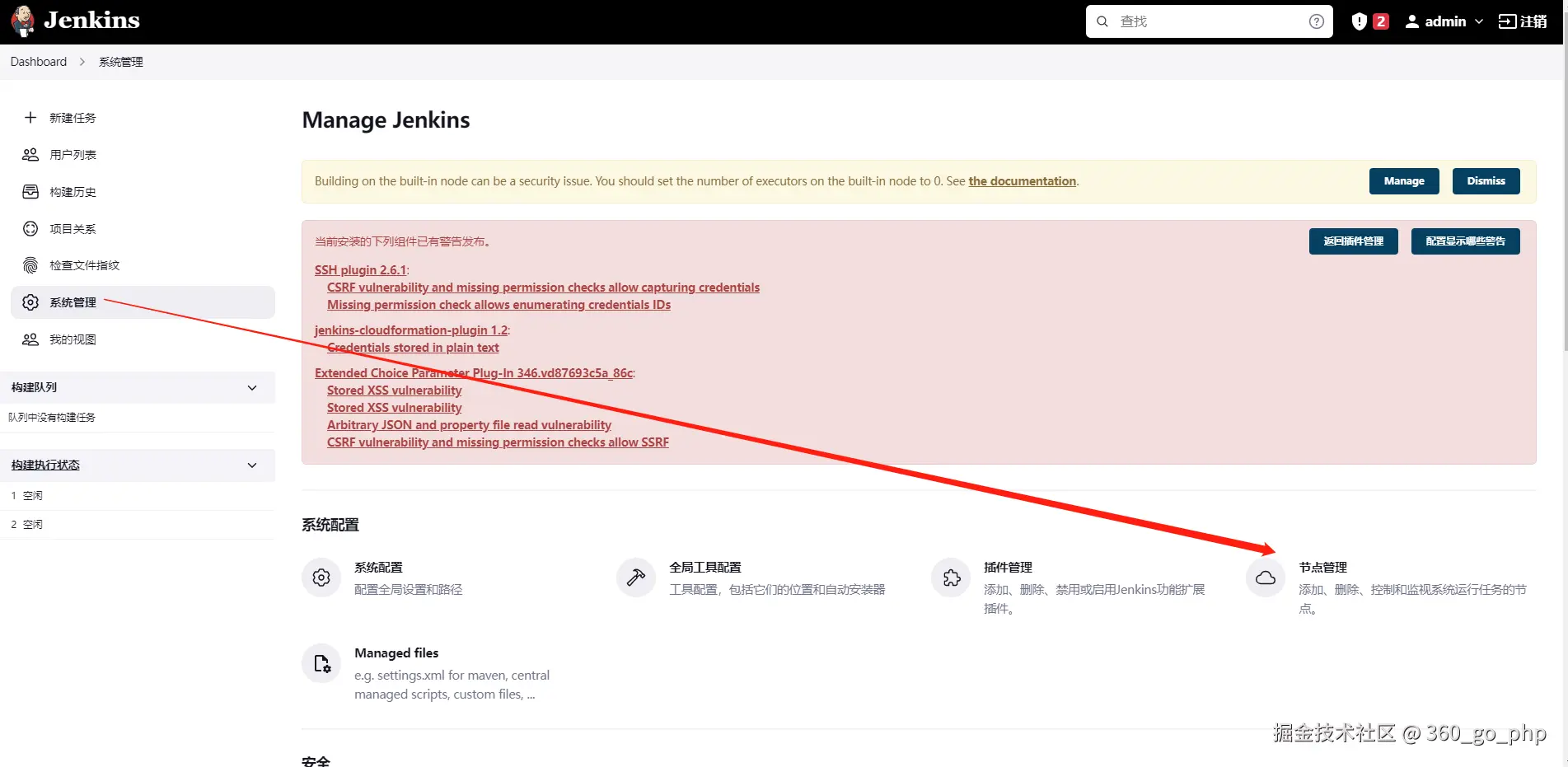 打开jenkins,选择系统管理-系统配置,找到Gitlab选项,取消gitlab认证