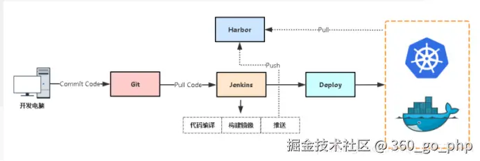 - Jenkins 会拉取最新代码,构建 Docker 镜像,并推送到 Harbor。