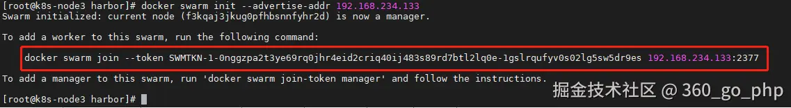 docker swarm init --advertise-addr 192.168.234.133