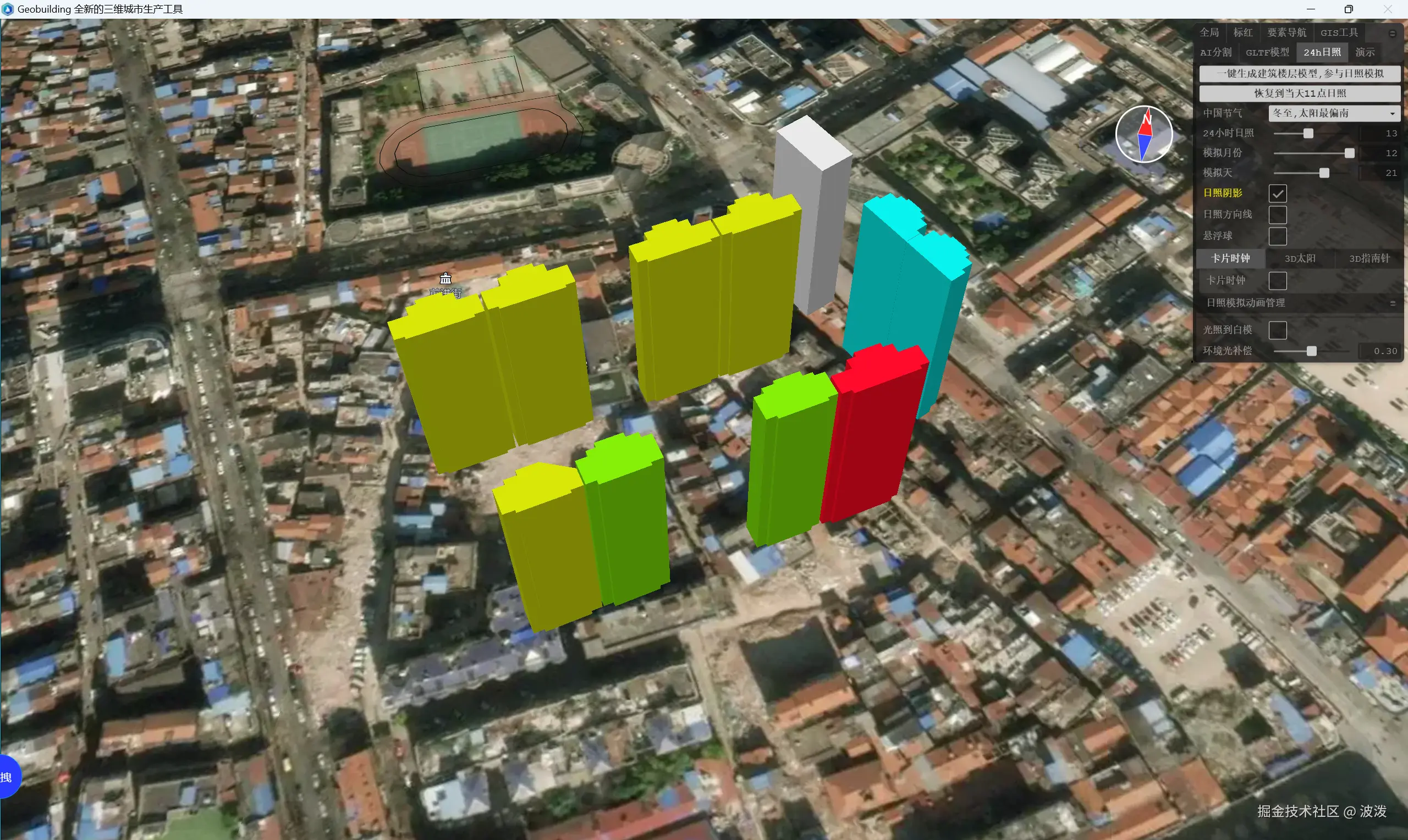 现在已经有了楼盘层模型和日照效果